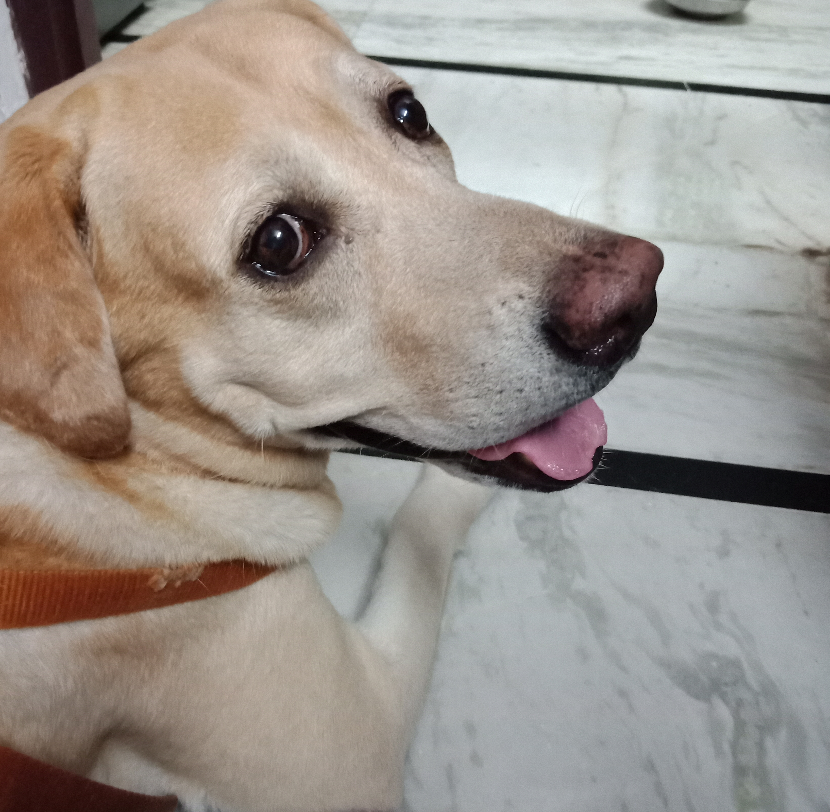 We both played with his ball and I can still remember the look in his eyes and the smile on his face when his pink tongue hung out one side of his mouth 🐶 and yeah, I forgot he was gasping heavily too (like me 😂). So, after an hour, I can see his eyes were begging me to go down 😂. My cadbury is a kind of hypersomniac and always feels drowsy 🤷♀️ (even when you try to talk to him, he can fall asleep that instant 😂). I usually make attempts to disturb his sleep and make him play with me or give him treats. This activity helped me to bring him out of his sleepiness. Wait! Let me show you his picture –