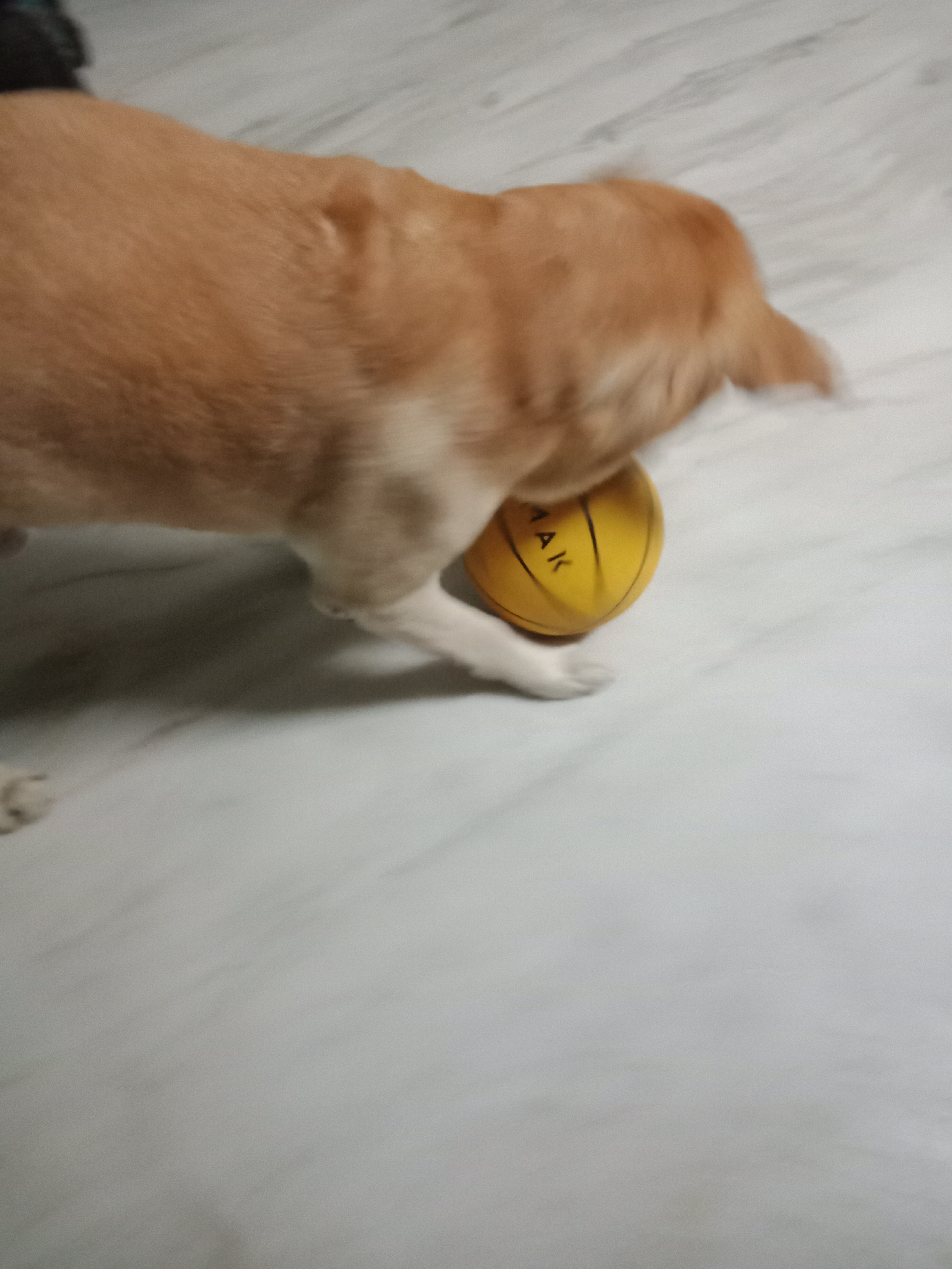 We occupied the entire house (yeah, what else do you think? Don’t expect a playground/ basketball court 🤣) and turned it into a playground. At some point, I thought he may break one of his legs by running like that. I also understood, dogs have natural traits in many activities and they can easily learn things. Well, I also saw his blood too when he was fighting to get hold of that ball with his mouth from me. He is a fighter 💪. Let me show you one of his pictures I clicked while playing –